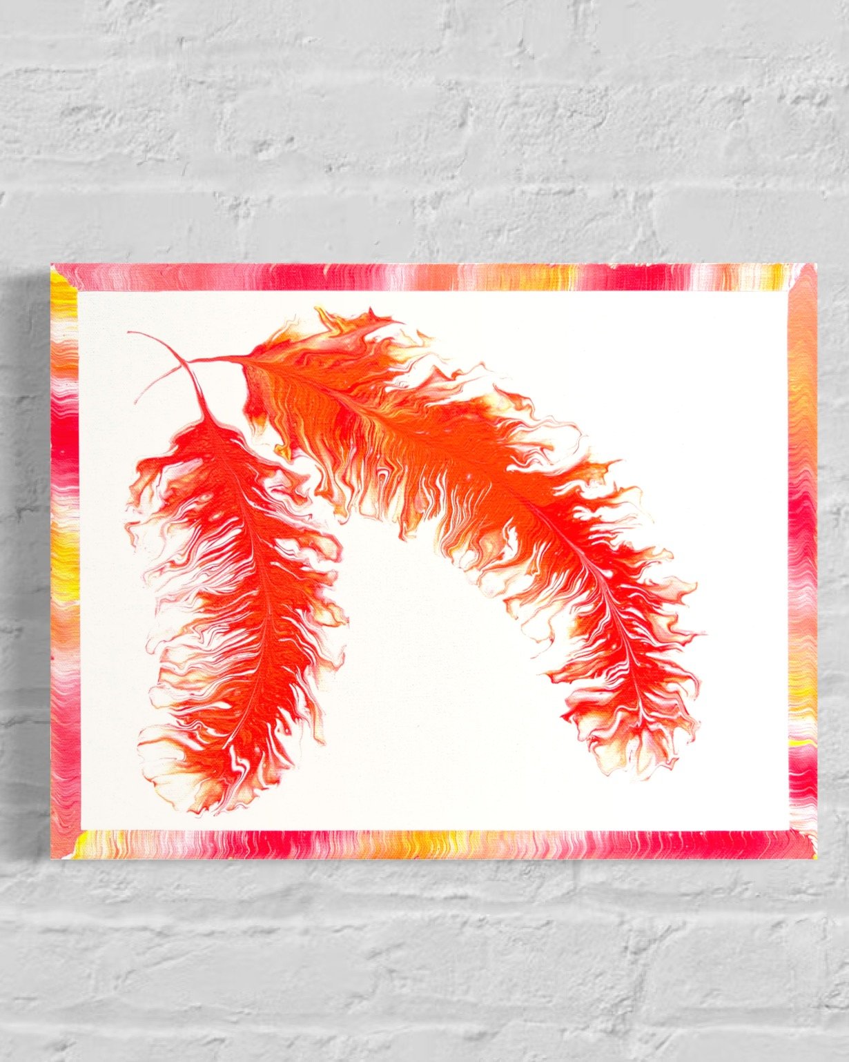 feather wall art abstract painting colorful decor spiritual red orange yellow
