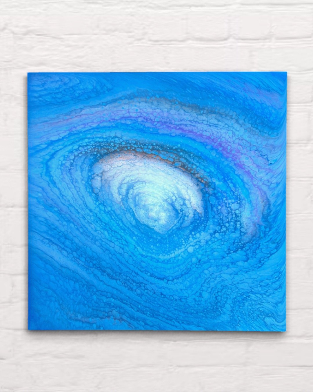 Eye of the Reverie came about from a tutorial video I created for a smaller painting for which I tried to use a color combo that I wouldn't ordinarily choose. I loved the result so much that I knew I had to create a larger version. At the same time that I was working on the tutorial video, I was trying to come up with a business name for my design services company. I stumbled upon the word "reverie" meaning a state of being lost in your own thoughts; a daydream. I loved the word and the meaning. I decided to use it in the business name, and Stylized Reverie was born. After I completed this painting, I felt that it reminded me of an eye of a storm with soft pops of color in a harmless daydream of awe and wonder with a heavenly view of our powerful and captivating atmosphere.